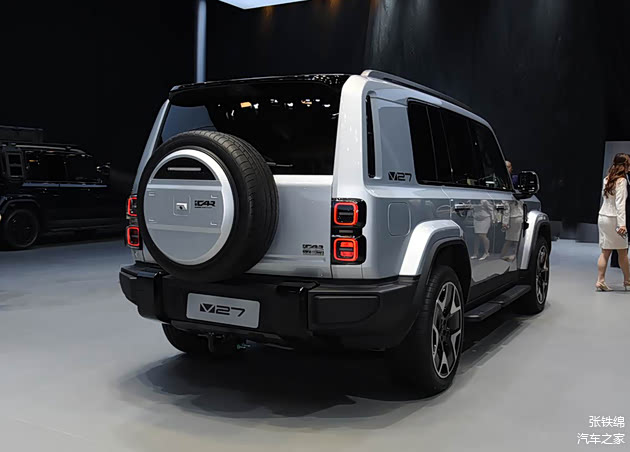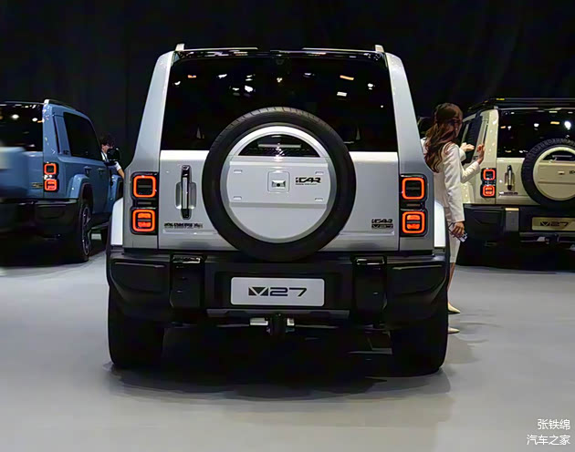 尾部造型简洁硬朗,使用了侧开式的后尾门设计,带有背挂式备胎,另外还会有带储物箱的版本。尾灯使用了两个方形的灯组,内部光源结构很别致。