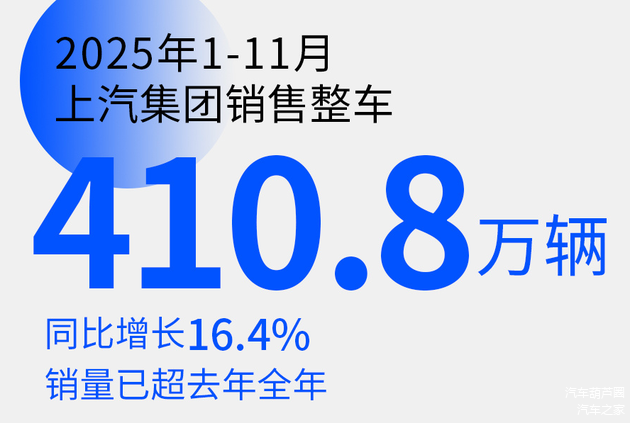 2025年1-11月,上汽累计销售整车410.8万辆,超过2024年全年销量,同比增长16.4%。而资本市场对此则给予了积极的肯定,12月16日,上汽集团正式重回上证50指数样本。