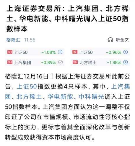 2024年12月,上汽集团被调出上证50指数。当时公司正经历经营压力,自主乘用车销量同比下滑28.3%,合资品牌上汽通用销量接近腰斩。