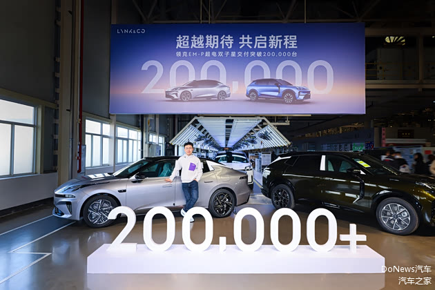 DoNews汽车12月17日消息,12月17日,由领克07 EM-P与领克08 EM-P组成的超电双子星产品阵容,正式达成200,000台整车交付里程碑,实力演绎“领克速度”,更成为助力品牌累计用户突破165万的核心引擎之一。