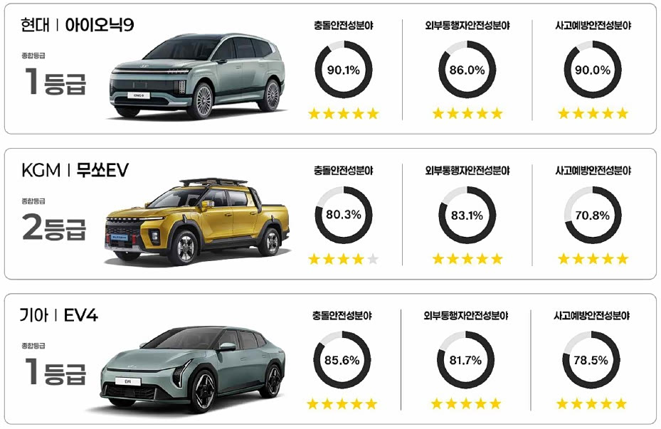 韩国国土交通部与韩国交通公社汽车安全研究院 17 日公布了 “2025 年汽车安全度评价(KNCAP)综合评估” 结果。