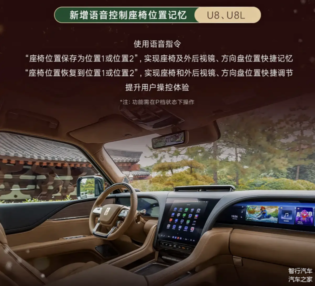 具体来看,不同车型的升级内容各有侧重。 仰望U8L此次新增的功能涵盖一键全车静音、行车记录仪原地掉头等场景自动触发记录功能、荣耀手车互联等;其中语音控制防晕车功能、地图导航全览时新增备选路线概览等配置,这个功能对那些长途出行的用户来说,还是有用的;一键隐私模式新增四门升窗联动且支持语音控制、实体钥匙靠近解锁充电口盖等细节升级,进一步提升了用车便捷性,空调与第三排座椅加热的联动策略,更贴合冬季多人出行的舒适性需求。