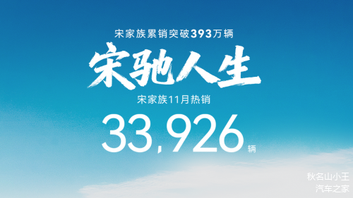 近日,比亚迪王朝公布11月销量数据,旗下宋家族持续热销,当月销量高达33926辆。