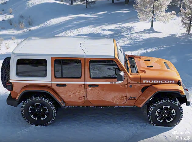 来到车身侧面,其侧面印有1941的专属标识,这个数字既是威利斯军车首次量产的年份,更是Jeep品牌精神的起点,承载着跨越80年的探索基因。车身配色提供丰富选择,其中橙色车身与白色车顶的组合最为吸睛,在越野场地中辨识度拉满。罗宾汉版本专属的白色发动机盖拉花从车头延伸至引擎中部,强化运动气质。车顶提供软顶与硬顶两种方案,软顶支持快速拆卸,适配户外场景的自由需求;硬顶则采用抗紫外线工艺,避免长期暴晒后发黄,兼顾北方用户冬季使用的保温性。17英寸越野轮毂搭配全地形轮胎,配合38.4°接近角与31.4°离去角,延续牧马人强悍的通过性。
