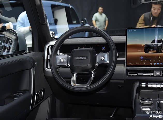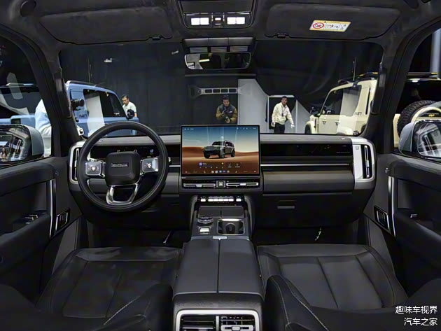 外观设计上,新车采用“未来经典”方盒子设计语言,整体来看不仅霸气十足,还充满了一些复古的味道。前脸窄条幅格栅与环形LED灯带组成“星际舷窗”视觉效果,车顶双天幕设计成为标志性元素,可拆卸行李架与隐藏式电动踏板兼顾实用与精致。尾部提供两种套件选择:外挂备胎的越野版强化硬派基因,配备“小书包”储物箱的城市版更显灵活,220mm离地间隙与23°接近角则保障了轻度越野通过性。尺寸上,5055/1976/1894mm(备胎版)的车身尺寸搭配2910mm超长轴距,近1:1的宽高比让姿态挺拔有力。