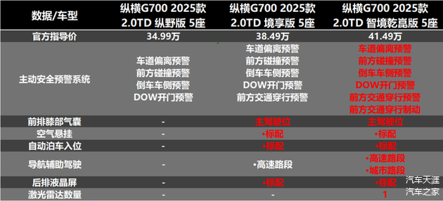 而对于两款车具体的配置如何选择,天涯君再和大家简单分析一波,如果你想选择纵横G700,建议和天涯君一样,选择次顶配的享境版,算上购车优惠和保险钱,落地的价格大概在36.7万元左右。