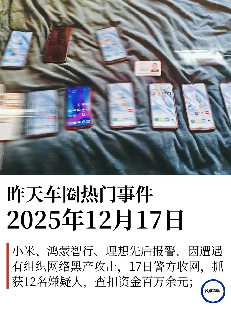 小米、鸿蒙智行、理想先后报警,因遭遇有组织网络黑产攻击,17日警方收网,抓获12名嫌疑人