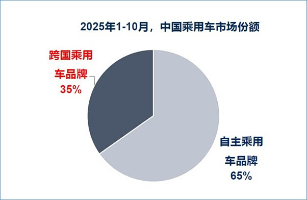 车百会理事长张永伟在近期的一次媒体采访中表示,跨国汽车企业与自主品牌的市场结构正在发生反转,跨国企业退出风险加大。他提供的数据显示,2020中国乘用车市场中,跨国品牌与自主品牌的市场份额为64%:36%,2025年1-10月,逆转为35%:65%。短短5年时间,跨国车企的市场份额下降了30%。