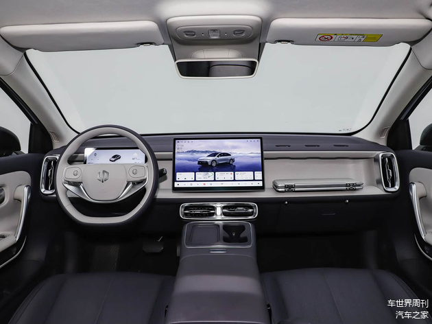 零跑B01的内饰布局比较规整,中控区域加入很多矩形元素,并提供有双幅式多功能方向盘、8.8英寸全液晶仪表+14.6英寸大屏以及电子怀挡,科技感还是不错的。有意思的是,副驾位置还配备了6个“魔术拓展坞”+1个凹槽,可玩性更强一些。