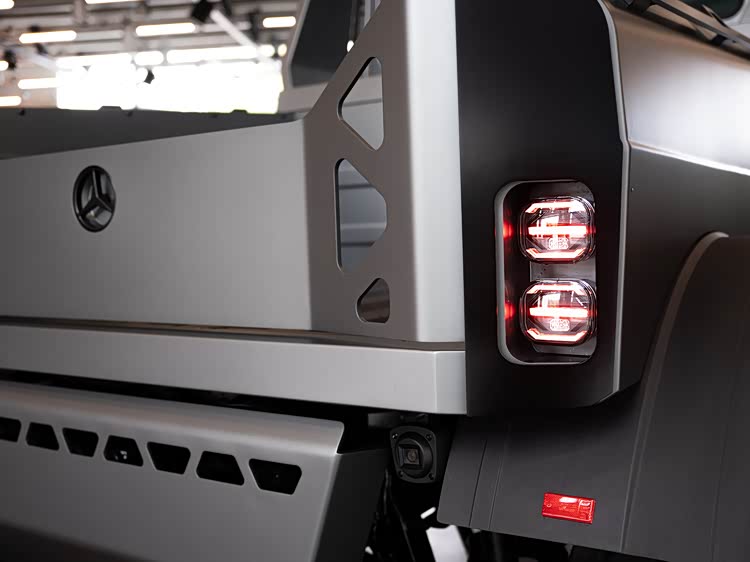 车尾及车身多处可见的镂空三角形结构,并非装饰符号,而是出于减重与结构强度平衡的考虑。这类结构在工程车辆上并不罕见,能够在保证承载能力的前提下,降低非必要质量。对于整备质量本就偏大的乌尼莫克而言,每一处结构优化都会直接影响通过性、油耗表现以及悬挂负担。从实际使用角度看,这类细节对长期持有者更具意义。