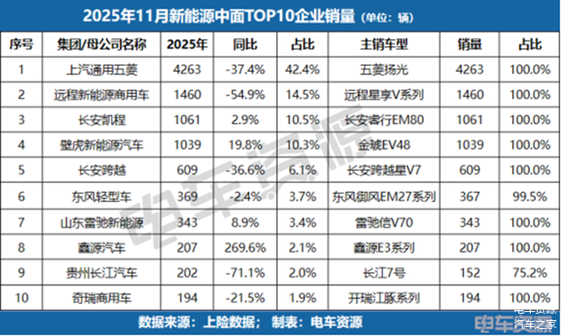中面市场也正在承压。上汽通用五菱凭借五菱扬光单一车型实现4263辆销售,以42.4%的份额保持绝对领先,但同比37.4%的下滑幅度,表明其传统优势市场正受到明显侵蚀。远程新能源商用车、长安凯程、壁虎新能源汽车等企业紧随其后,分别通过远程星享V系列、长安睿行EM80、金琥EV48等差异化产品,积极抢占细分应用场景与区域市场。