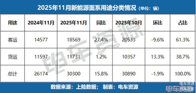 在用途方面,客运与货运需求保持稳定。客运车型销量1.9万辆,货运车型1.2万辆,分别占据总销量的61.3%与38.7%,客运需求仍占主导,但货运市场亦稳步发展。