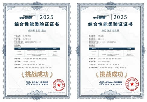【有车开车资讯】12月18日,在中国汽车技术研究中心主办的“2025极寒驾控安全主题技术验证”中,东风雪铁龙凡尔赛C5 X与东风标致508L凭借卓越的操控稳定性,双双斩获“操控稳定性挑战”验证证书。其中,凡尔赛C5 X在雪地爬坡与雪地高速爆胎测试中表现稳健,东风标致508L则在雪地双移线与雪地蛇形测试中展现出精准的操控功底。这一成绩,充分印证了两款车型扎实的整车品质与法系品牌在极端环境下的安全技术底蕴。