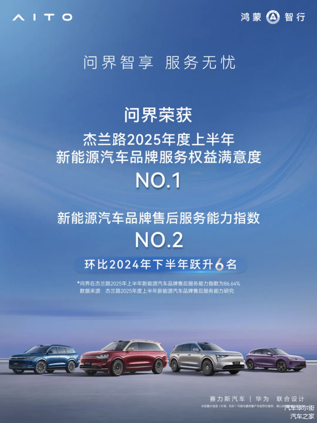 正是硬核技术实力与极致服务,让问界获得了用户真正的认可。根据杰兰路发布的《2025年度上半年新能源汽车品牌健康度研究》结果,问界荣获品牌服务权益满意度第一名、品牌售后服务能力指数第二名的好成绩;同时,问界M9在新能源车型净推荐值(NPS)总榜中取得85.2分的高分表现,位居领先位置。