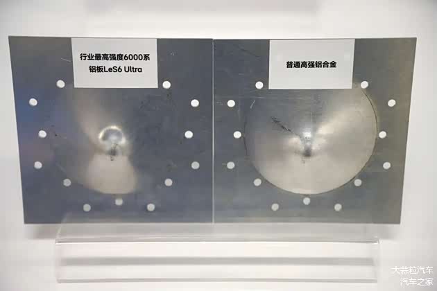 行业最高强度 6000 系铝板 LeS6 Ultra 和普通高强铝合金的冲击结果对比|图片来源:理想