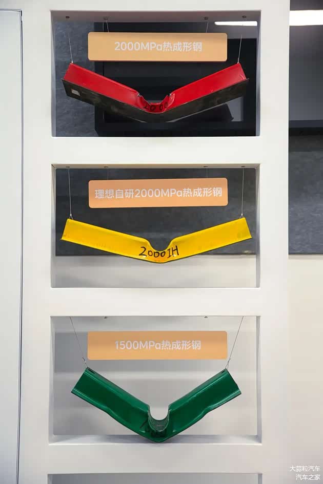 理想自研 2000 IH 热成形钢和其他热成形钢的撞击对比|图源:理想汽车