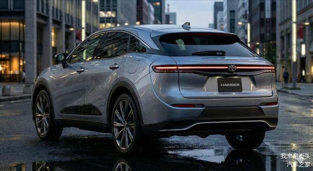 外观设计上,Harrier采用低趴coupe SUV造型,前脸配备锐利LED大灯、宽幅水箱护罩与品牌标识,前保险杠造型动感硬朗。车侧腰线雕塑感明显,配20寸运动轮圈,轮眉覆盖防刮材质;车尾延续低趴造型,贯穿式LED尾灯组与立体后保险杠设计,辨识度高且科技感十足。