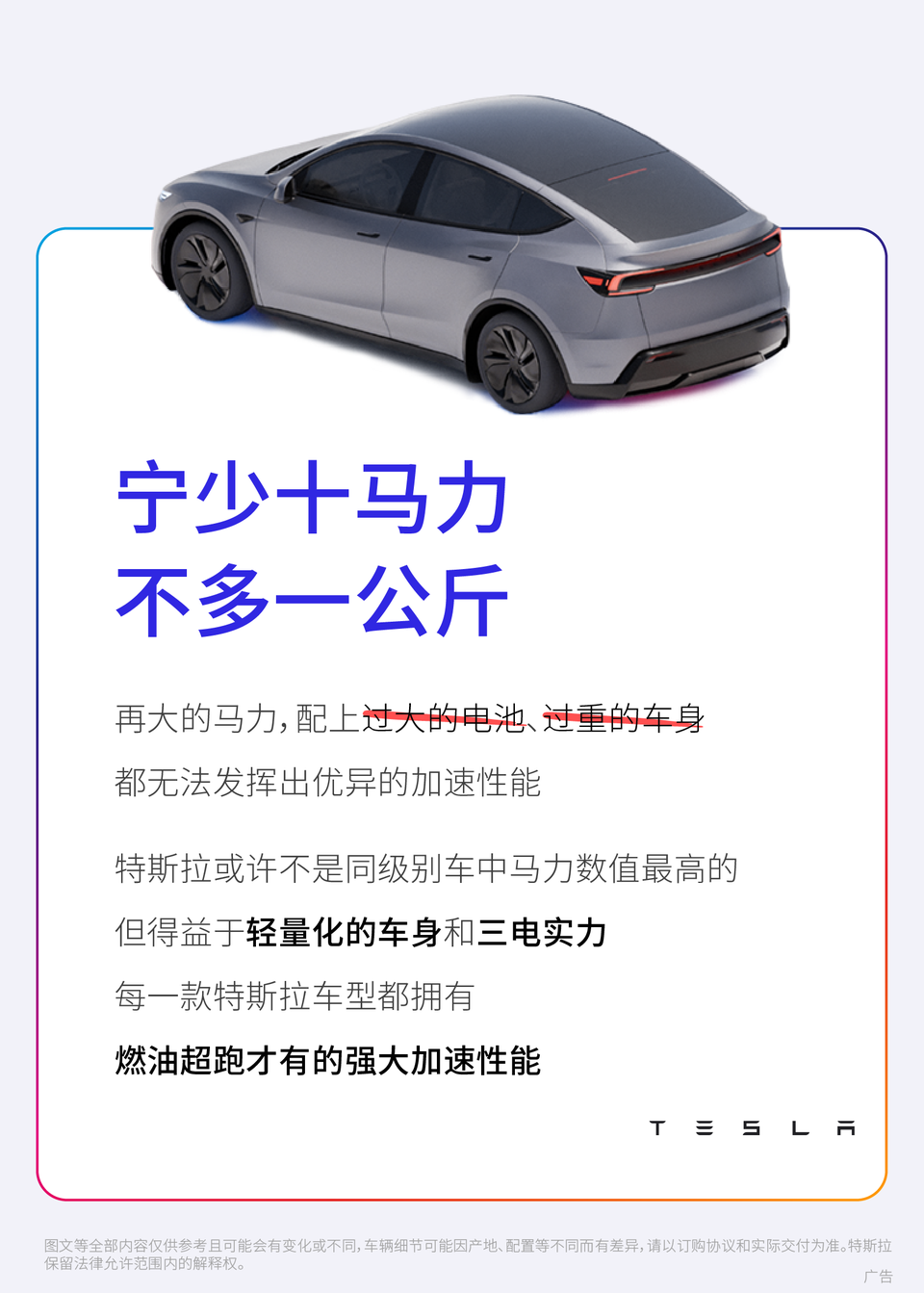 过重的车身、过大的电池 只会把动力变成“负担”🪨 特斯拉不靠堆参数 轻量化车身➕高效三电系统 让每一匹马力,都能带来更强大的加速性能🏎