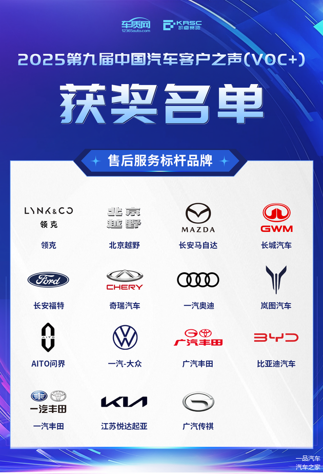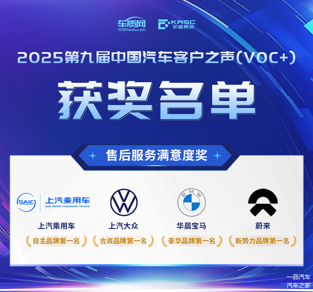 会议现场揭晓了2025第九届中国汽车客户之声(VOC+)售后服务满意度奖、售后服务标杆品牌和卓越贡献奖。
