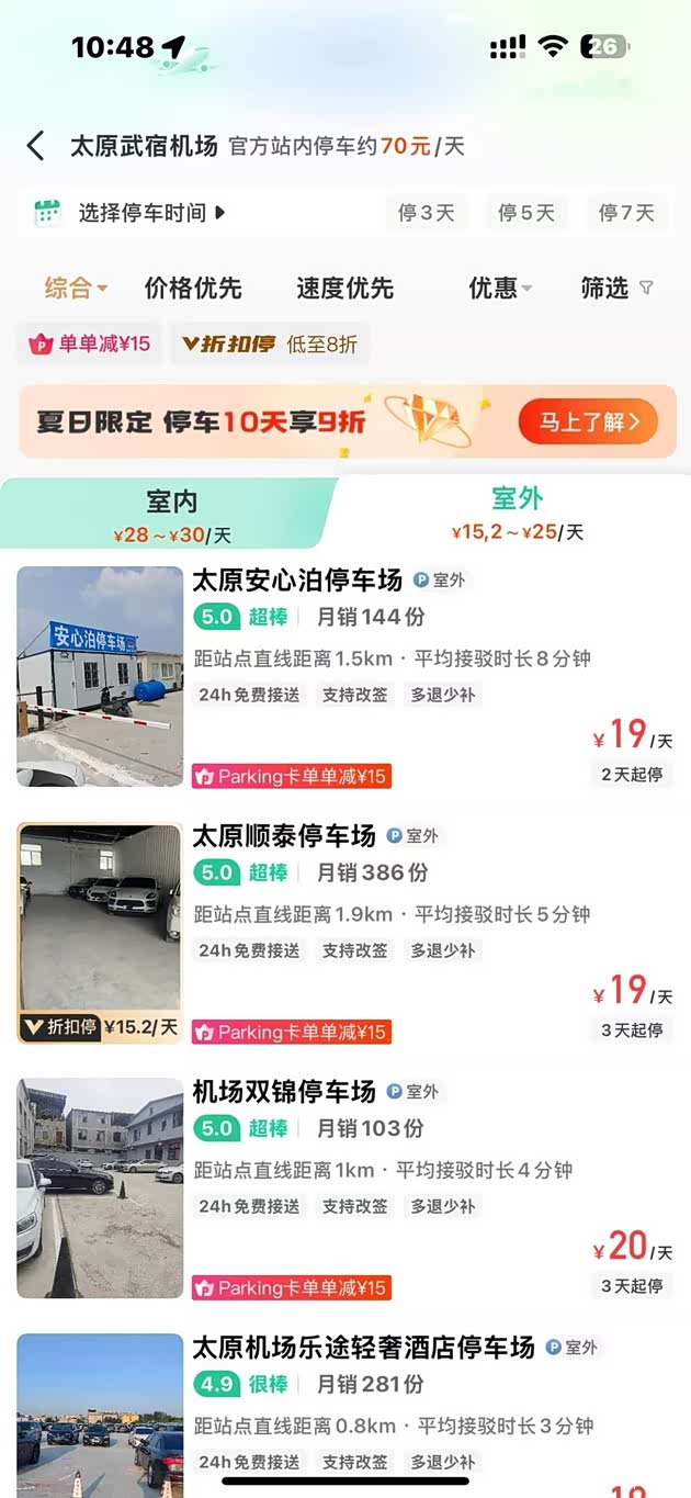 我内心满是焦虑,满脑子都想着要火速赶到太原武宿机场搭乘航班。时间紧迫得如同被上了高速运转的发条,每一分每一秒都似在疯狂飞逝,根本容不得我有丝毫的迟疑与耽搁。我急忙在手机上约了辆网约车,满心盼着它能尽快赶来接我,助我顺利登上飞机。然而,左等右等,等来的却是订单被司机毫无缘由取消的噩耗。那一刻,我心急如焚,整个人就像热锅上的蚂蚁,在原地急得团团转。就在我焦虑到极点时,突然灵光一闪,想到自驾去机场或许更稳妥。可很快,新的难题又摆在了眼前。太原武宿机场停车费极为高昂,每天竟要70元,这对于短途出行或是长期旅行的旅客而言,无疑是一笔不小的开销。正当我愁眉苦脸、一筹莫展时,一则好消息如同一道曙光,照亮了我眼前的困境。我偶然发现,在微信上搜索【小强停车】,就能在该平台预约机场附近的低价停车场,每天仅需15.2元,输入邀请码“58”还能领取38元抵扣券,这简直是自驾旅客的绝佳福音!