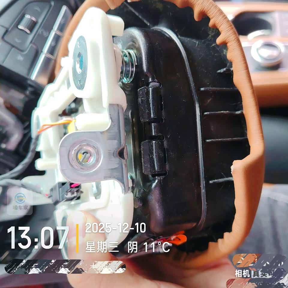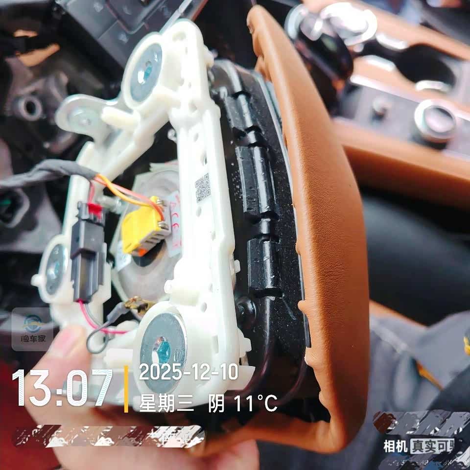 比如说,仪表台重新蒙皮了,气囊盖换了,字母标识也重新烙印了,内部卡扣也拆了;