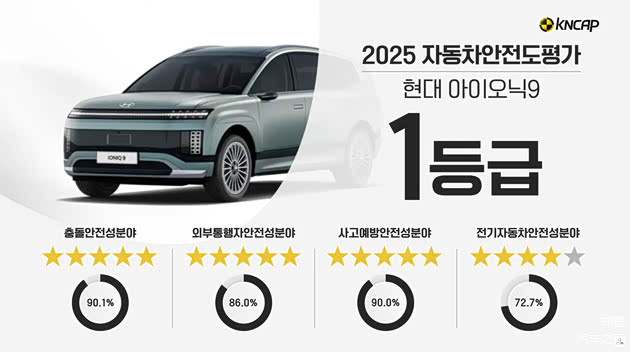 KNCAP 的安全评级由上述三个维度的综合得分决定,只有在所有维度均取得优异成绩,才能获评高等级。经过多轮严苛测试,最终有 4 款车型斩获 1 级最高评级,分别是现代艾尼氪 9、现代帕里斯帝、现代 NEXO 以及起亚 EV4。