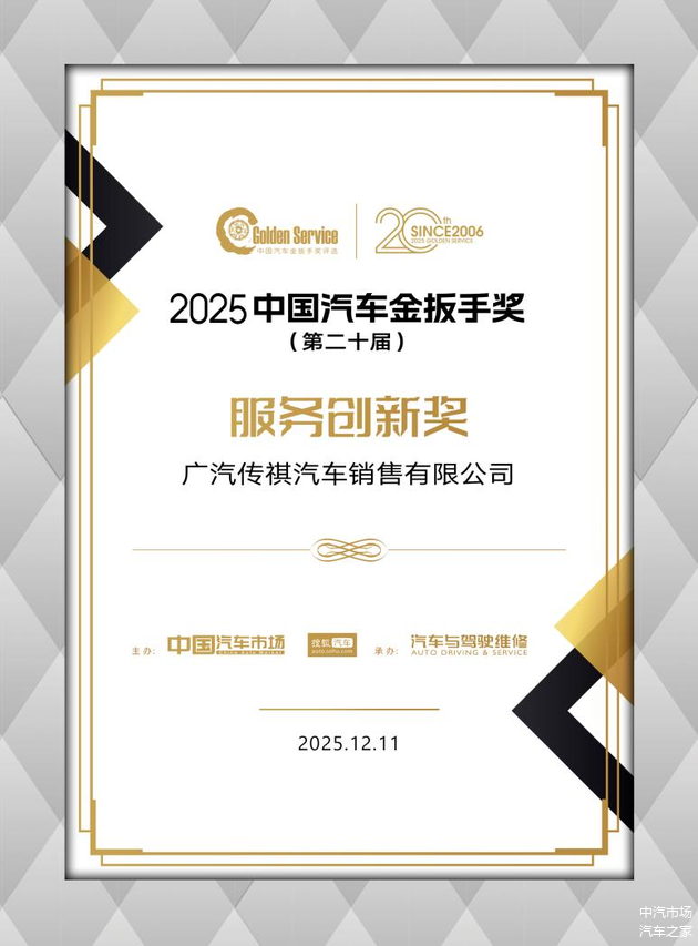 当汽车市场进入“服务决胜”的时代,有一个品牌用七年坚守给出了行业范本。12月11日,在北京举行的2025(第二十届)中国汽车金扳手奖颁奖典礼上,广汽传祺连续第七年荣膺“服务创新奖”,这份由《中国汽车市场》与搜狐汽车联合认证的荣誉,再次印证了其作为行业服务标杆的硬核实力。