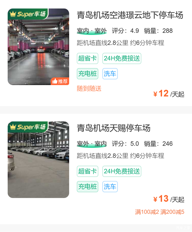 在青岛胶东机场停车,从上面的收费可以看到,短时间内停车,比如几分钟或者几个小时,收费还是比较亲民合理的,不过要是停车时间拉长,去到几天或者十几天,那么收费就有点小贵了,这种情况下,现在有个好办法,就是停到机场附近的停车场。
