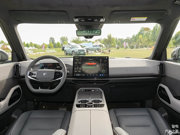 内饰方面,该车采用简洁的设计风格,中控可见三块屏,搭载15.6英寸2.5K Mini-LED中控屏,8.8英寸仪表和备70英寸AR-HUD抬头显示,车载系统内置高通骁龙8255芯片,配备越野360全景系统以及智能旅行路书等功能。