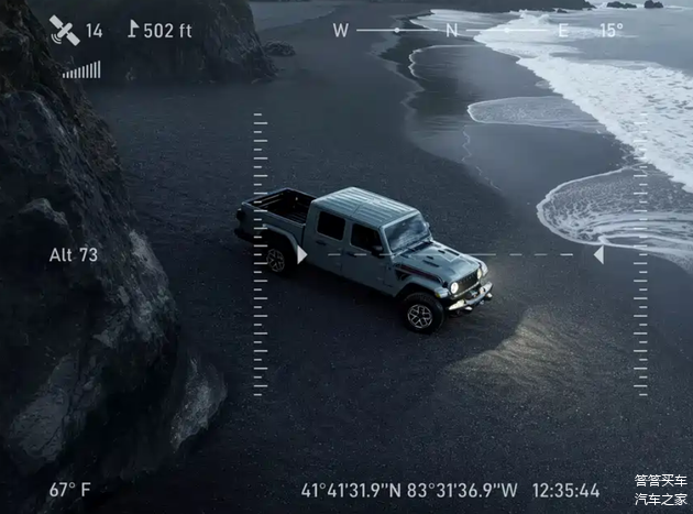 外观方面,新车基于Jeep角斗士Rubicon升级而来,外观整体延续原型车的设计,不同之处是在格栅、发动机舱盖、尾门等处增加了熏黑装饰,配备了黑色钢制保险杠,提供具备3629公斤拖拽能力的原厂绞盘。