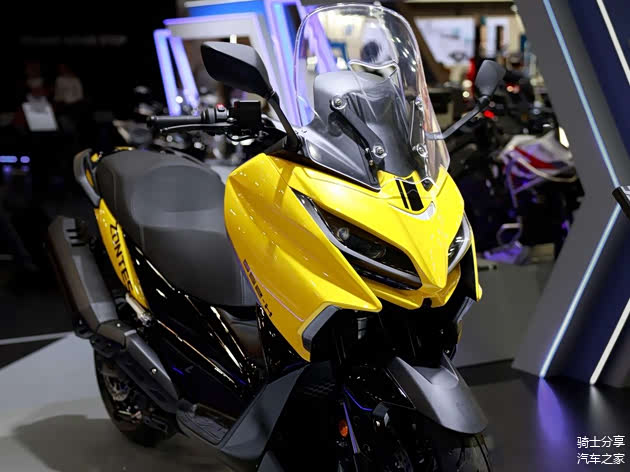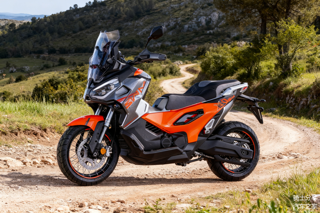 这同样也是一款跨界ADV踏板车,从展台表现来看,该车颜值不错,所搭载的并列双缸引擎能够提供31KW的最大功率和42N·m的最大扭矩,另外也会有结构上的一定进化,前倒置减震器、辐条轮毂、后气囊减震都有应用。