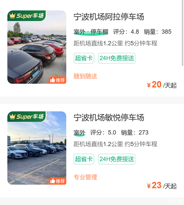这个省钱停车方案是——把车停到机场附近的停车场,收费上会便宜不少,一天的停车价格在20到25左右,具体看停车场的环境,好点的收费就会稍微贵一些。停车场离机场大概在2到3公里的地方,接驳往返航站楼停车场会有免费接送车负责。