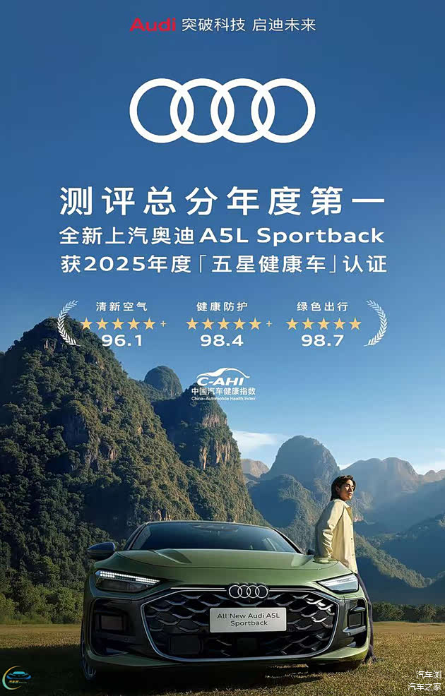 12月19日,中国汽车工程研究院《2025年度C-AHI中国汽车健康指数测评》结果发布:全新上汽 奥迪A5L Sportback以总分第一的成绩,登顶“五星健康车”年度榜首。