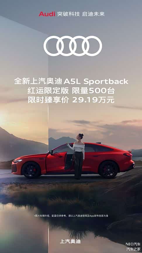 岁末迎新之际,上汽奥迪于12月12日正式推出A5L Sportback “红运限定版”车型。新车呼应岁末节日氛围,以进阶科技配置焕新豪华驾趣,全国限量500台,限时臻享价29.19万元,伴用户共启新年红运锦程。