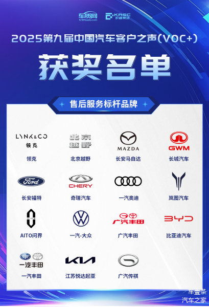附:2025第九届中国汽车客户之声(VOC+)奖项及获奖名单