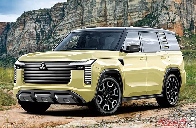 全新的 三菱帕杰罗设计假想图 在外观上展现了一种宽大而流畅的设计风格。车头采用了垂直的设计角度,中央格栅呈现出巨大的形态,内部则有横向的格栅,给人一种层次感十足的感觉。头灯组采用了不规则的造型,展现出强烈的气势。
