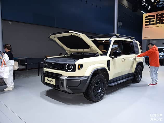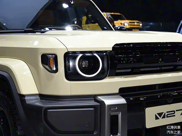 外观方面,iCAR V27采用了硬派方盒子造型,厚重的车头富有力量感,并且两侧设计了反光示廓灯,不同版本的格栅和前保险有所区别,熏黑大灯内部圆形的光圈很醒目,犹如一双很有气势的眼睛盯着前方,给人的感觉就是“不好惹”,而很多网友说它看起来很像路虎卫士,我也觉得确实有那股范儿,不过仔细观察就会发现,iCAR V27大部分还是原创元素。