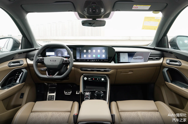 全新一代奥迪Q5L内饰的科技感和现代感有着明显的提升,三块液晶屏幕也是较为显眼,全液晶仪表的尺寸为11.9英寸,中控屏幕的尺寸为14.5英寸,副驾驶屏幕的尺寸为10.9英寸,200KW版本标配B&O音响系统,换挡机构采用按键式,无线充电为标配,充电的功率为40W。