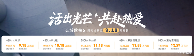 •580km 激光雷达版(限时换新价:12.58万元起)