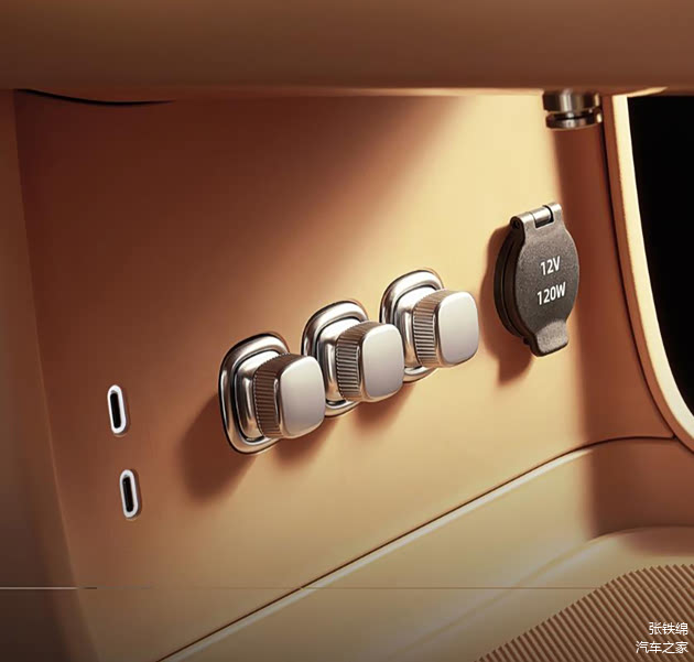 细节方面,副中控台底部的镂空储物格前部带有香氛系统,另外还提供了USB接口以及12V电源接口。
