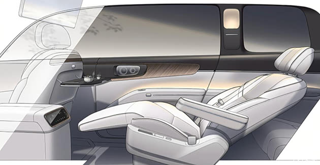 新车采用6座布局,第二排是独立式座椅,带有腿托和折叠式扶手,能够形成躺椅式的效果。另外前排座椅后部还会带有小桌板。