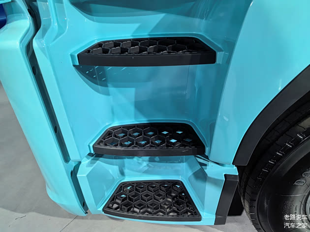 图片上这辆马尔代夫蓝色的新车就是解放鹰驰自主电驱桥牵引车,它也是解放鹰驰系列中纯电动牵引车的代表性产品。它继承了鹰驰系列造型美观大气、轻量化、风阻低等优点,又在动力、节能、可靠性等领域做出了提升。
