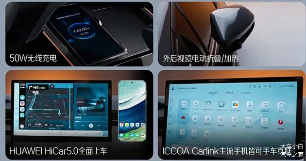 智能化是雷凌L的另一亮点。新车车机系统搭载了高通8155P车规级芯片,12.9英寸中控屏支持HUAWEI HiCar 5.0和Carlink手机互联功能。内饰配置方面,采用黑+白双色设计,配备贯穿式空调出风口和64色可调氛围灯。中控台有50瓦无线充电面板。