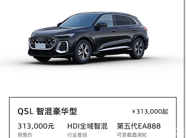 各位老铁,都说“三十年河东,三十年河西”,在如今的车市里,这周期可能缩短到了三个月。当一众传统豪强还在为如何“触电”而纠结时,奥迪这次在它的王牌SUV——全新 Q5L上,展示了一套令人耳目一新的“组合拳”:预售价直接锚定31万多,核心动力换上了第五代EA888,而最重磅的一击,是把华为乾崑智驾系统请进了驾驶舱。这一连串操作,不禁让人想问:奥迪,这是终于想通了?