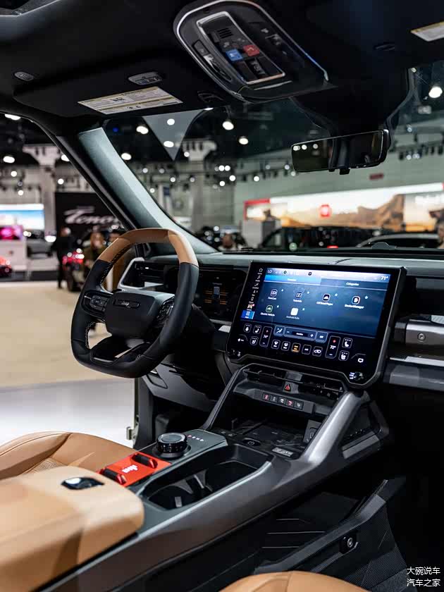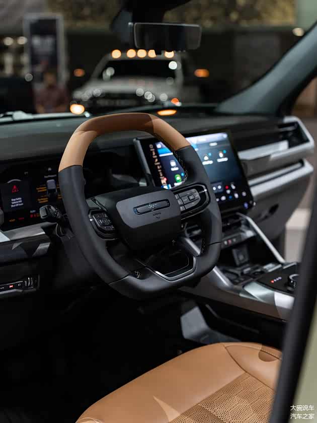 内饰也是采用了新的设计,有着硬朗的造型,提供12.3英寸的全液晶仪表,搭载14.5英寸的中控屏幕,尺寸较大,并且采用了硬朗的方向盘造型。