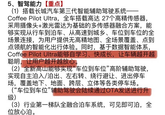 更讽刺的是产品宣传的自相矛盾,按照魏牌的素材,高山搭载的Coffee Pilot Ultra系统“能自学习、快成长,车位到车位辅助驾驶可OTA升级”,堪称“全场景智能天花板”。可转头蓝山就推出“智能进阶版”,明摆着是承认之前的系统不够完善——要么是当初的宣传夸大其词,要么是为了追智能化热度再炒一轮。而魏建军明明多次禁止发布会“吹牛皮”,这种前后矛盾的操作,恰恰打了“求真”的脸。