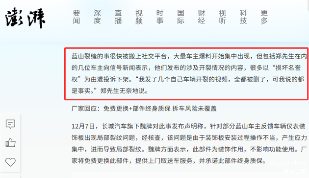连用户的“真问题”,魏牌都要“退避三舍”,此前蓝山车型爆出仪表台开裂,多位车主在社交平台晒出开裂视频,结果内容被以“损坏名誉权”为由投诉下架。“我说的是事实,却被删了所有内容”,一位车主的愤懑,戳破了魏牌“求真”的假象:求真,本应直面问题、解决问题,而不是捂嘴删帖。这哪里是“欲进思退”,分明是“进不得,退不让”。
