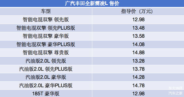作为新增的动力选项,全新雷凌L搭载的2.0L自然吸气发动机最大功率126千瓦,峰值扭矩205牛·米,匹配CVT变速箱;全新雷凌L 1.8L油电混动版的发动机最大功率为72千瓦,峰值扭矩142牛·米,系统综合功率101千瓦,WLTC工况综合油耗低至4.19升/百公里。