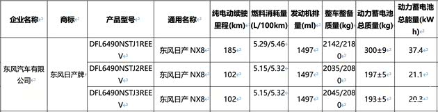 近日,工信部公布了东风日产旗下全新SUV车型NX8增程版的相关续航信息。根据公开资料显示,该车将提供三种电池容量配置,分别为20.3千瓦时、21.1千瓦时以及37.4千瓦时,对应的纯电续航里程分别为102公里与185公里。目前测试工况尚未明确标注,参考行业常见标准,预计将采用WLTC工况进行测定。值得注意的是,除增程版本外,NX8也将同步推出纯电动车型。