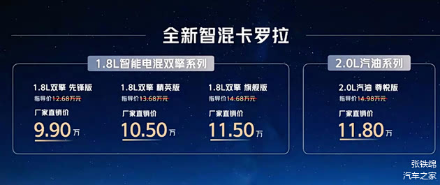 新款车型搭载的是1.8L油电混动和2.0L燃油两种动力系统,另外值得注意的是,老款车型还将保留1.2T版本继续销售,两种配置售价分别为12.28万和12.88万元。